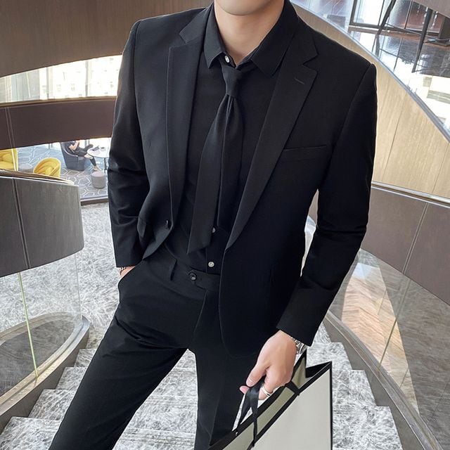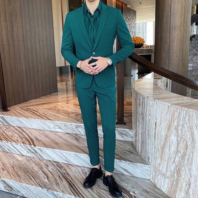 【予約販売】メンズ スーツ 無地 シック ブラック ベージュ グリーン ピンク ジャケット シャツ パンツ セット セットアップ パーティ 二次会 同窓会 結婚式 韓国 トレンド M/L/XL/2XL/3XL