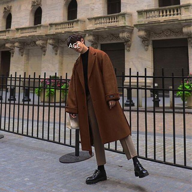【予約販売】チェスターコート アウター ロング丈 メンズ 袖タグ シンプル ブラウン ブラック ビジネス 防寒 お洒落 こなれ感 ベーシック 秋冬 大きいサイズ M/L/XL
