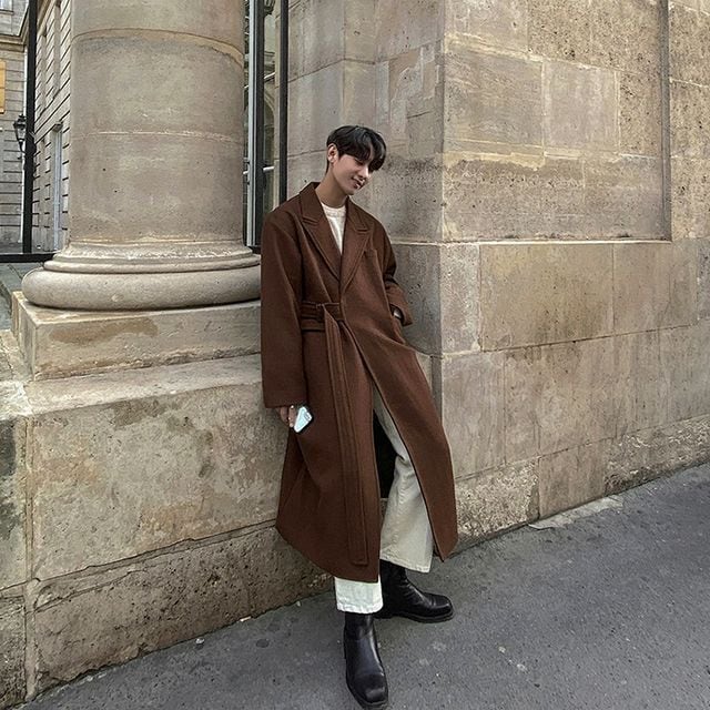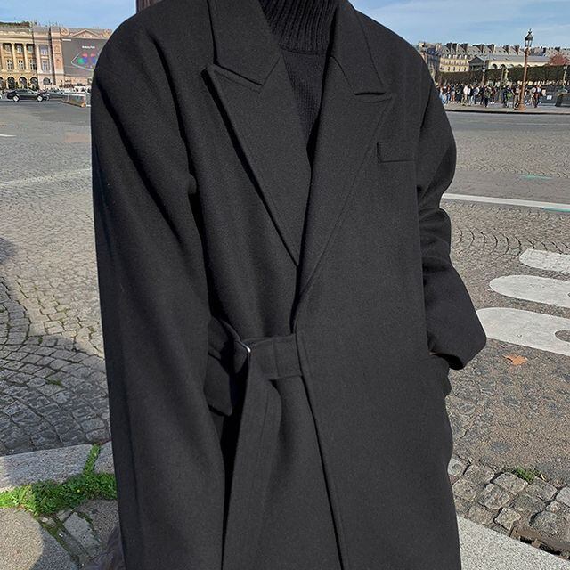 【予約販売】チェスターコート アウター ロング丈 メンズ 無地 ウエストベルト ブラックブラウン ビジネス 防寒 お洒落 こなれ感 ベーシック 秋冬 大きいサイズ M/L/XL/2XL
