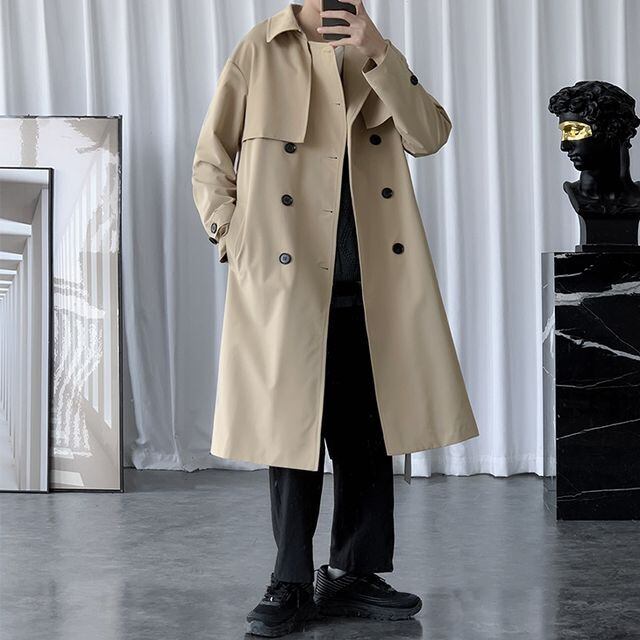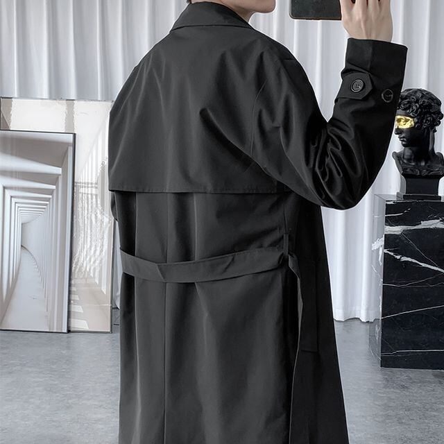 【予約販売】トレンチコート アウター ロング丈 メンズ 無地 ウエストベルト ブラック ベージュ ビジネス 防寒 お洒落 こなれ感 ベーシック 秋冬 大きいサイズ S/M/L/XL/2XL/3XL