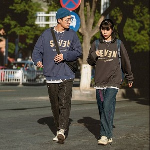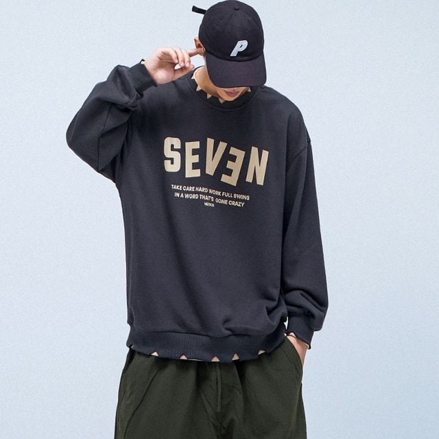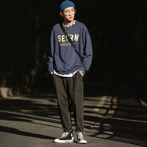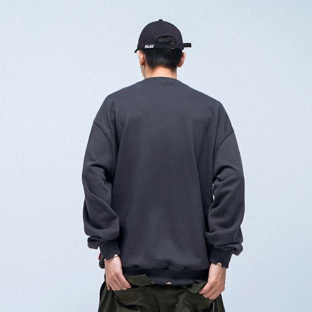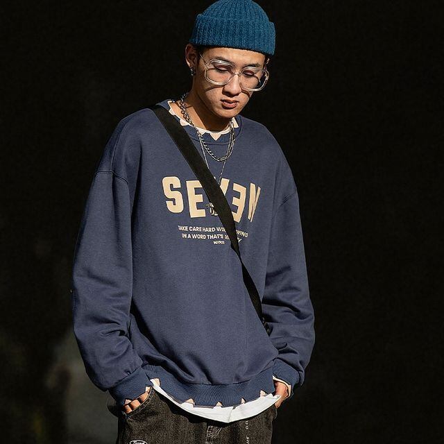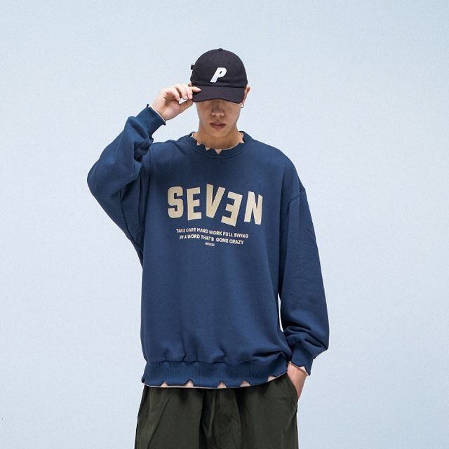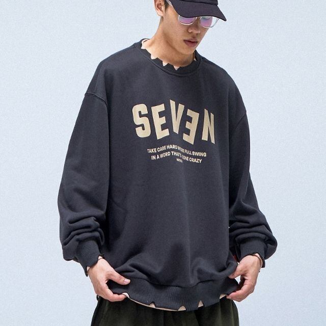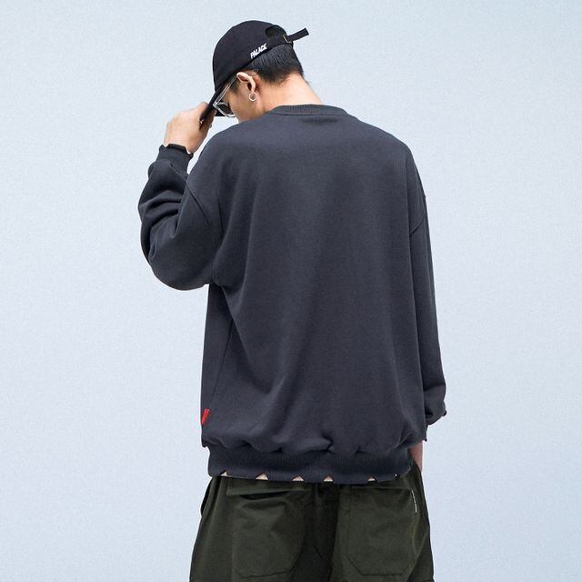【予約販売】 トレーナー ダメージ加工 スエット ネイビー グレー 長袖 メンズ 無地 カジュアル こなれ感 お洒落 韓国 トレンド 秋冬春 M/L/XL/2XL