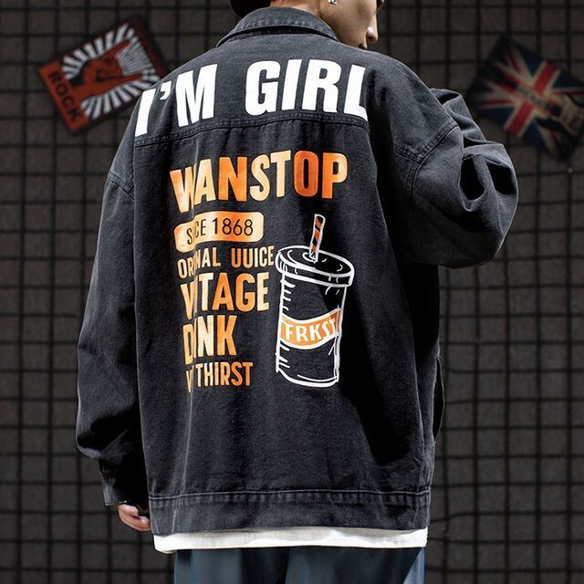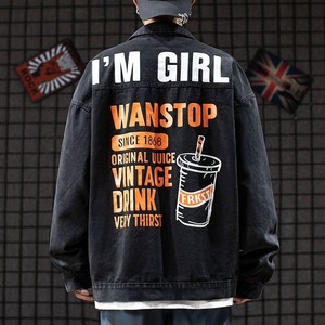 【予約販売】デニムジャケット ダメージ加工 バックプリント アウター ショート丈 ジージャン メンズ ブルー ブラック お洒落 こなれ感 ベーシック 秋冬春 大きいサイズ M/L/XL/2XL