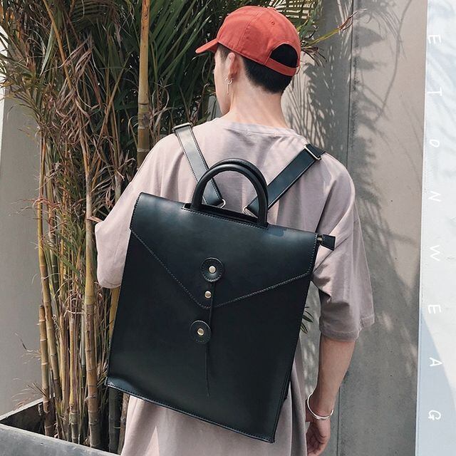 【予約販売】ショルダーバッグ 3WAY メンズ スクエア ブラック ブラック バッグ リュック 肩掛け ビジネス こなれ感 お洒落 韓国 トレンド