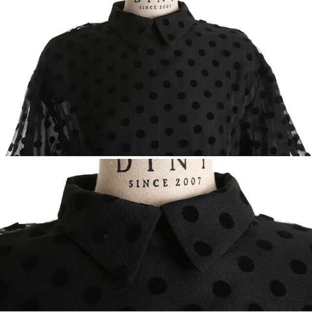 全2色 レディース トップス ブラウス 袖コンシャス ボリューム袖 ドット シースルー お呼ばれ ホワイト/ブラック S/M/L/XL