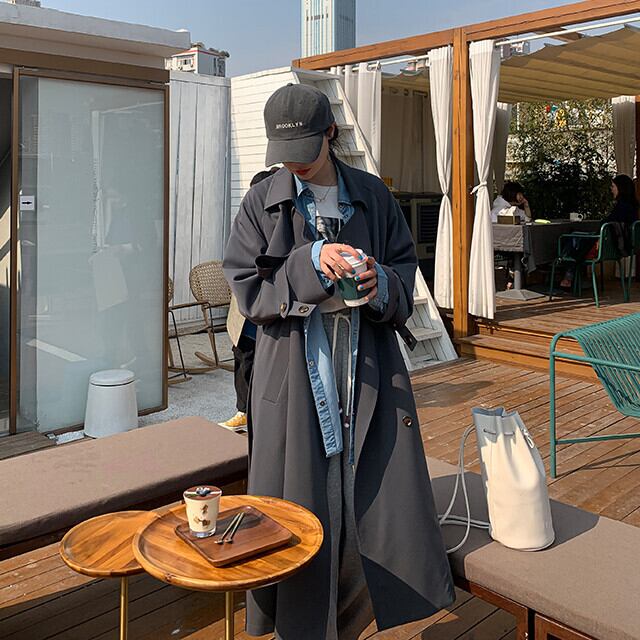 全2色 レディース トレンチコート スプリングコート ミドル丈 オーバーサイズ ルーズシルエット ベージュ/グレー S/M/L