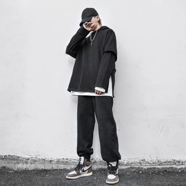 【予約販売】ロンT レイヤード 重ね着風 長袖 メンズ ユニセックス グレー ホワイト ブラック ホワイト ゆったり カジュアル こなれ感 お洒落 韓国 トレンド 春 M/L/XL