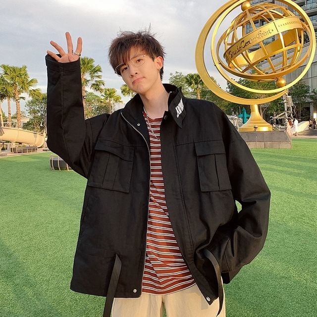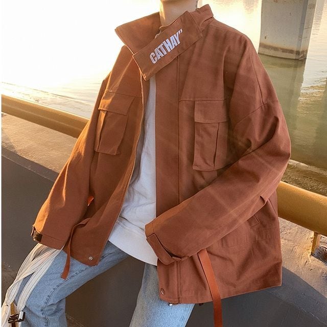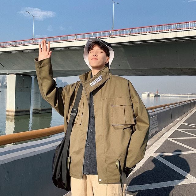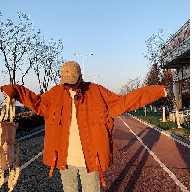【予約販売】ジャケット アウター メンズ ブラック カーキ オレンジ カジュアル こなれ感 お洒落 韓国 トレンド 春 M/L/XL