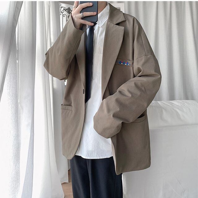 【予約販売】テーラードジャケット アウター メンズ ブラック カーキ ブラウン カジュアル こなれ感 お洒落 韓国 トレンド 春 M/L/XL/2XL/3XL/4XL/5XL
