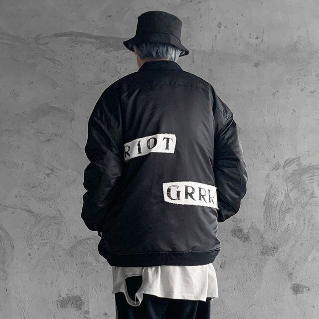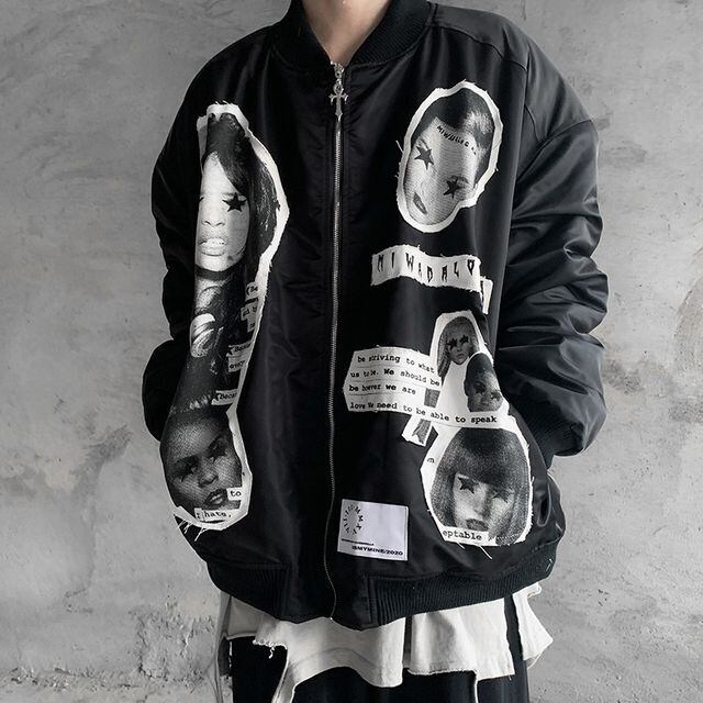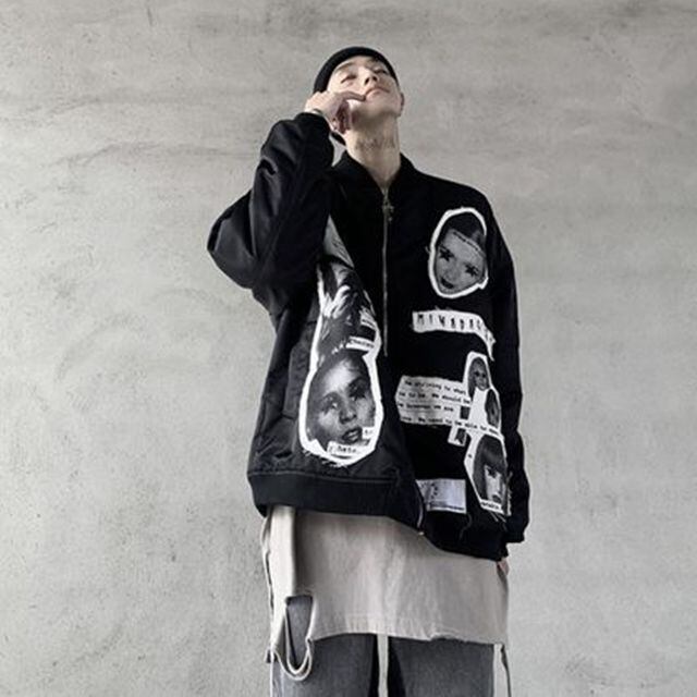 【予約販売】ブルゾン ジャケット アウター メンズ ブラック プリント カジュアル こなれ感 お洒落 韓国 トレンド 春 L/XL