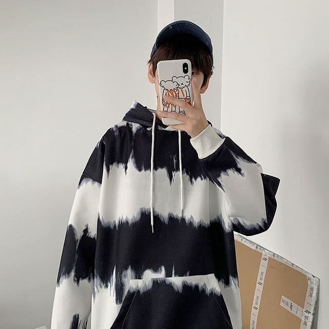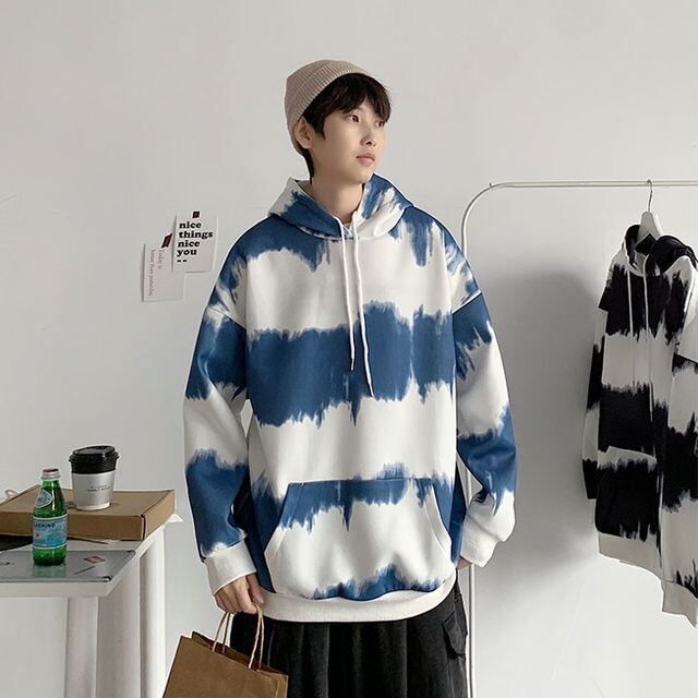 【予約販売】パーカー タイダイ 長袖 メンズ スエット ブルー ブラック ゆったり カジュアル こなれ感 お洒落 韓国 トレンド 春 M/L/XL/2XL