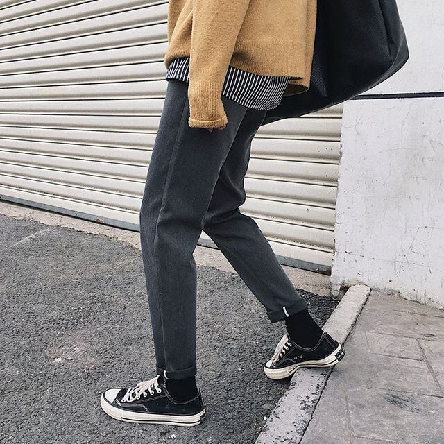 【予約販売】スリムパンツ メンズ フィット ベーシック グレー ブラック きれいめ こなれ感 お洒落 韓国 トレンド 春 秋 28/29/30/31/32/33/34