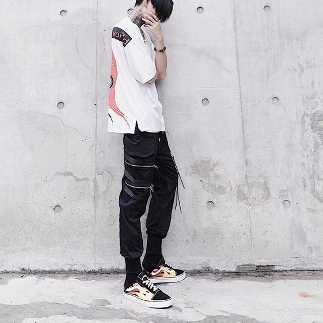 【予約販売】ジョガーパンツ メンズ スリム ポケット ブラック こなれ感 お洒落 韓国 トレンド 春 秋 S/M/L/XL/2XL/3XL
