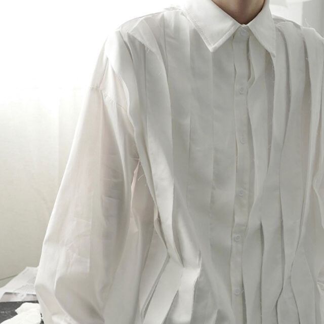 【予約販売】シャツ 長袖 メンズ ホワイト ブラック シック こなれ感 お洒落 エレガント 韓国 トレンド 春 S/M/L