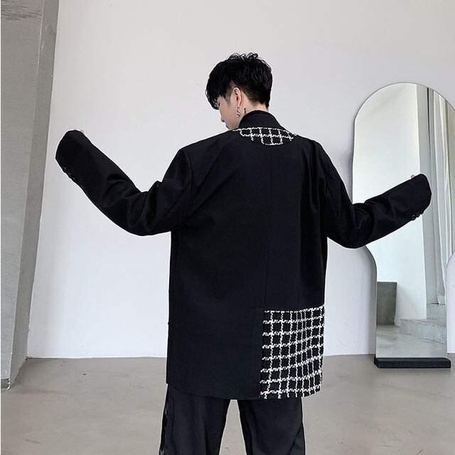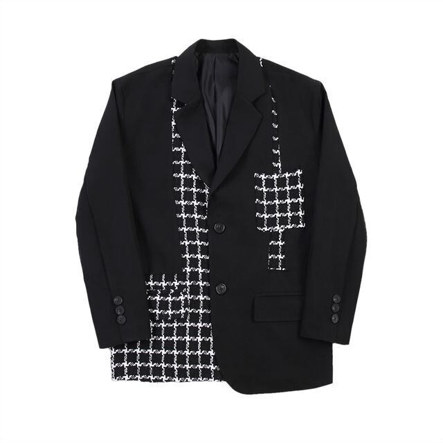 【予約販売】ジャケット メンズ モノトーン 切り替え 春 アウター ブラック こなれ感 お洒落 韓国トレンド 春 秋 M/L/XL