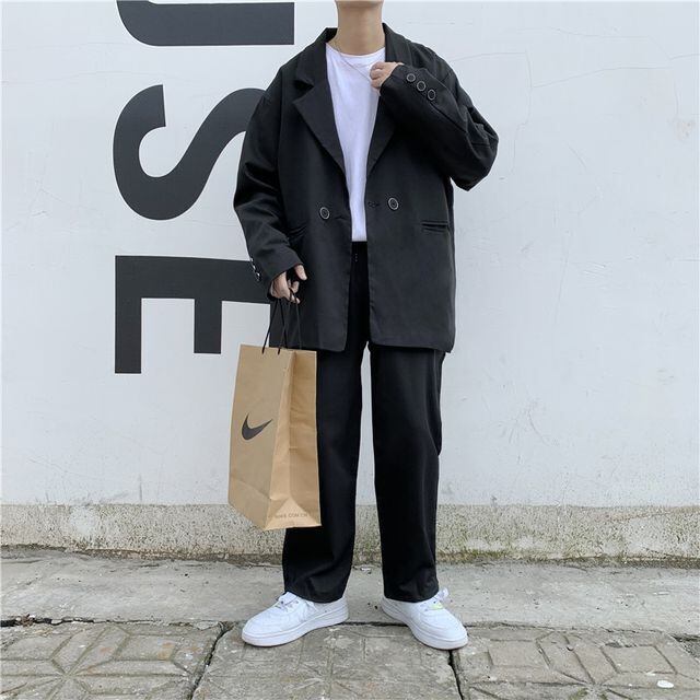 【予約販売】メンズ セットアップ カジュアル 無地 きれいめ ブラック グレー ジャケット ジョガーパンツ セット 春 パーティ 二次会 同窓会 結婚式 韓国 トレンド L/XL/2XL/3XL