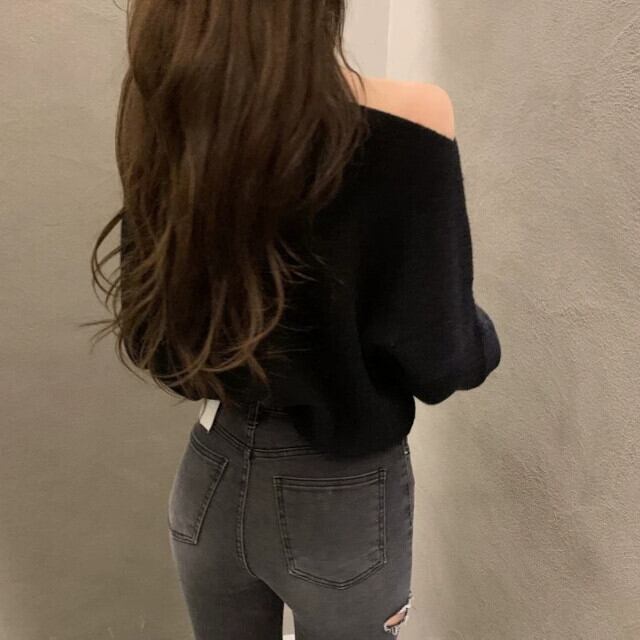 全2色 ベージュ/ブラック レディース ワンショルダー スリット ハイネック ロング ルーズ ニット セクシー 肌見せ