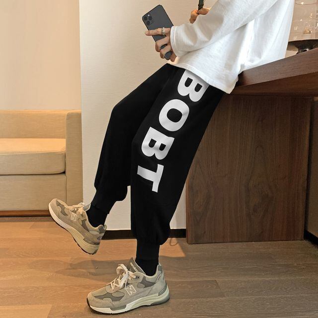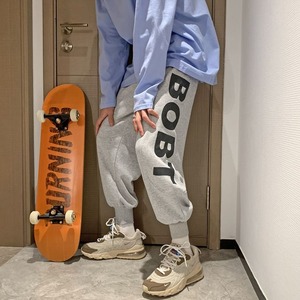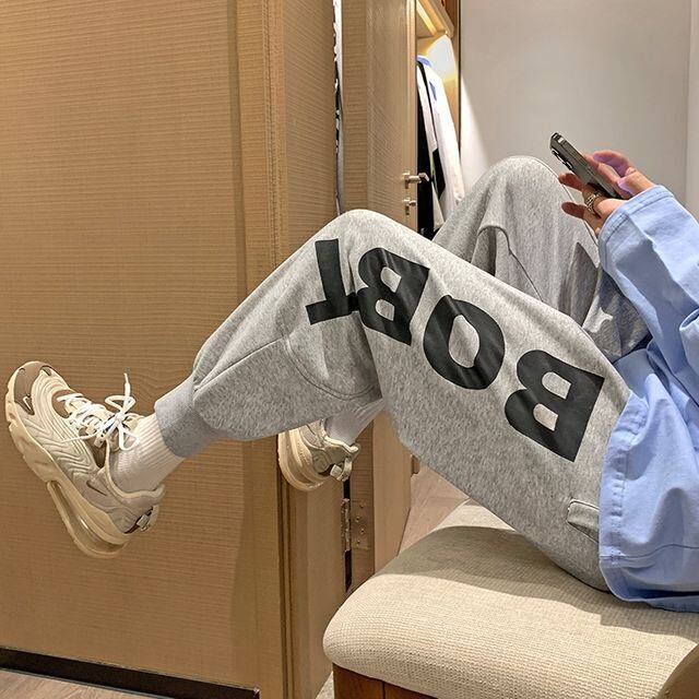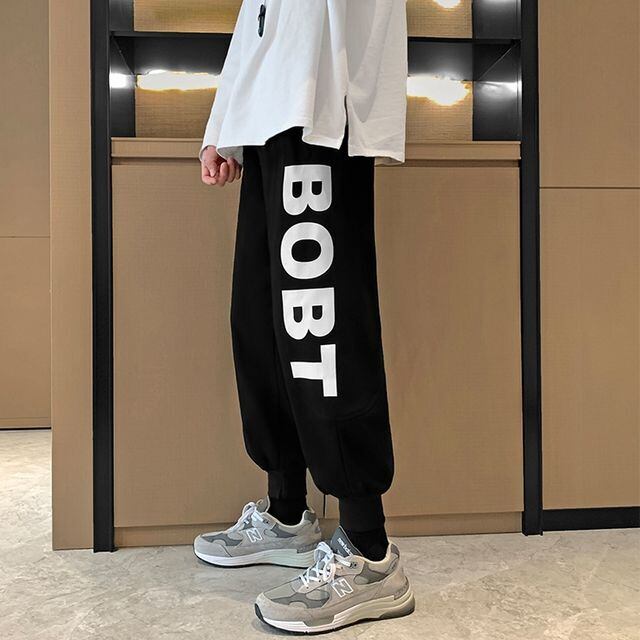 【予約販売】ジョガーパンツ メンズ ロゴ スエット ブラック グレー こなれ感 お洒落 韓国 トレンド 春 秋 M/L/XL/2XL/3XL/4XL/5XL