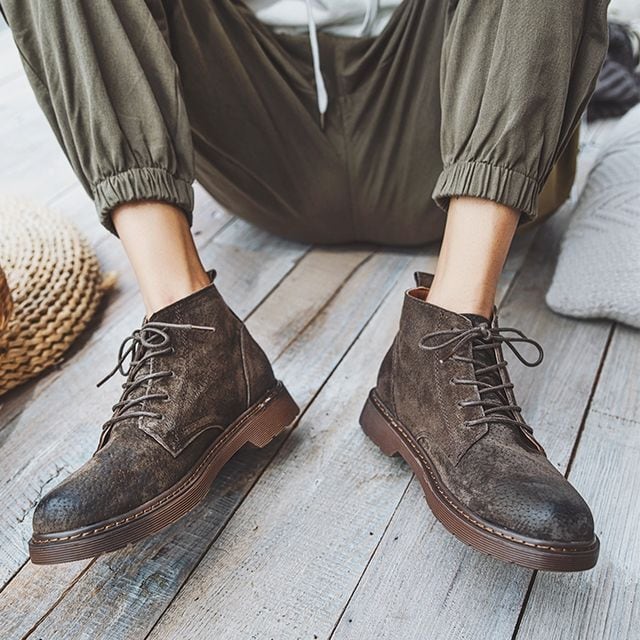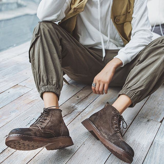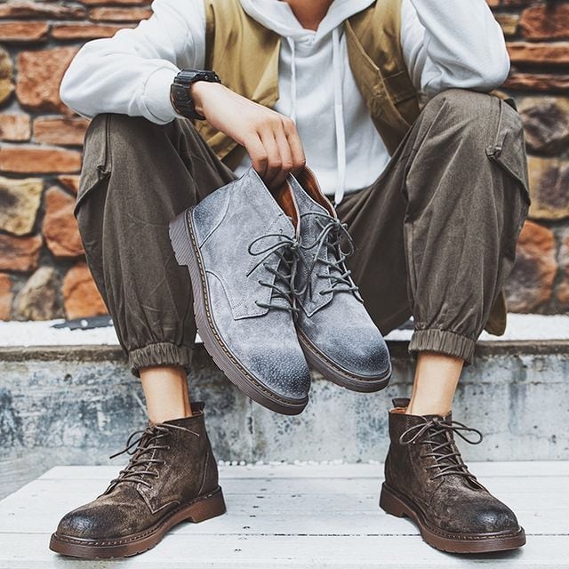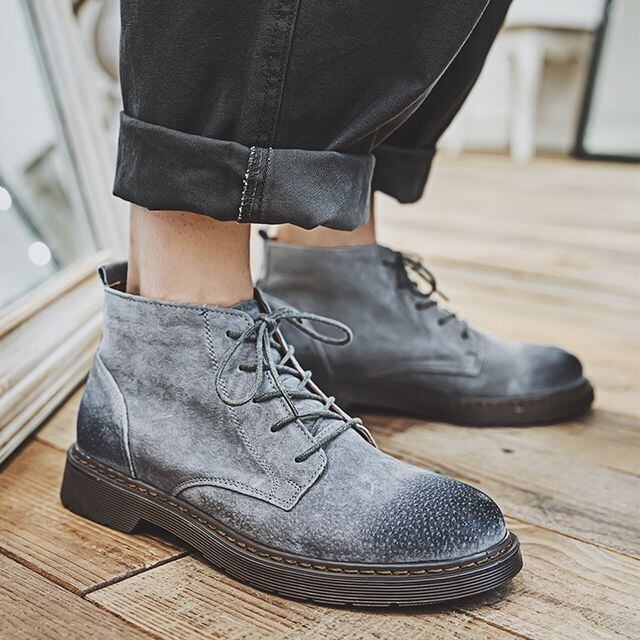 【予約販売】ショートブーツ メンズ 艶消し アンティーク調 シューズ 靴 グレー ブラウン お洒落 カジュアル ストリート 24cm/24.5cm/25cm/25.5cm/26cm/26.5cm