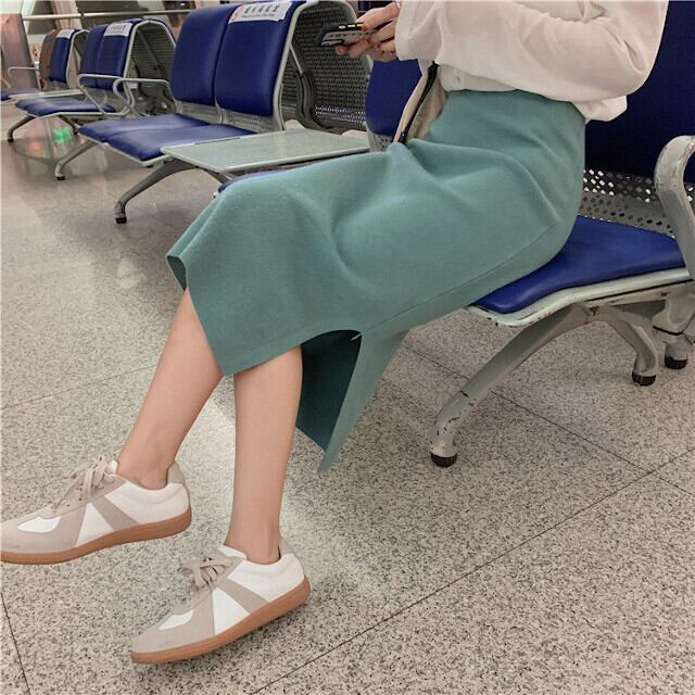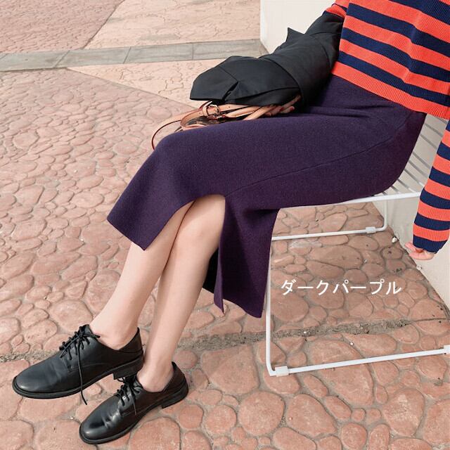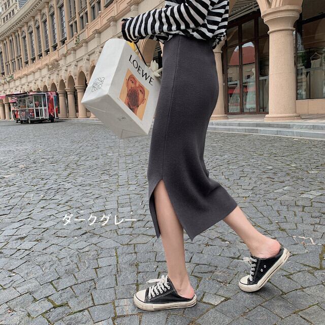 全11色 レディース スリット入り ミモレ丈 膝下丈 ニットスカート カラバリ豊富 春秋 カジュアル