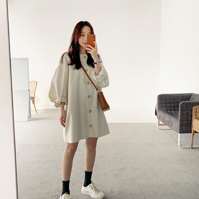 レディース ボリューム ミニワンピース 膝上 アイボリー ボリューム袖 バルーン袖 春秋 S/M/L/XL