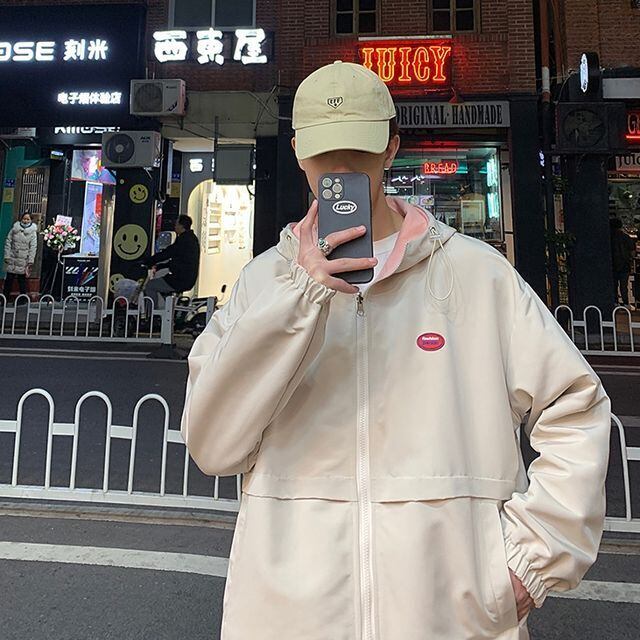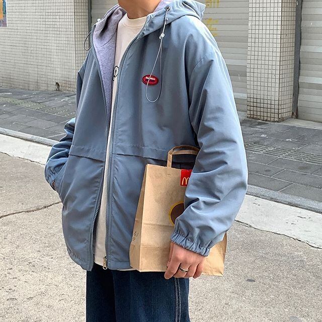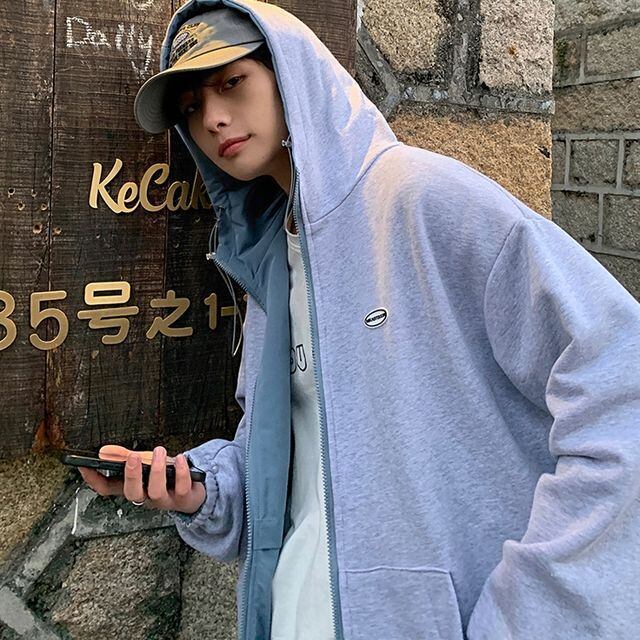 【予約販売】パーカー リバーシブル ジャケット アウター メンズ ブルー ベージュ カジュアル こなれ感 お洒落 韓国トレンド 春 秋 S/M/L/XL