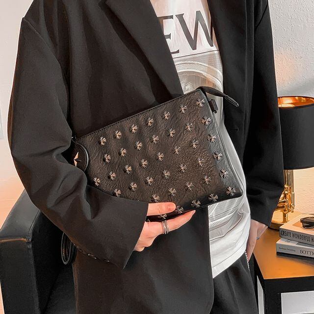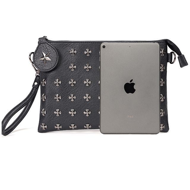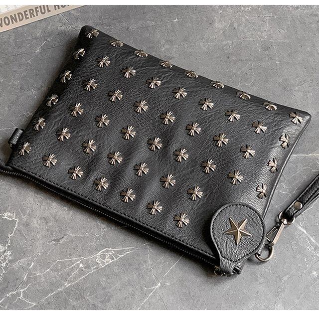 【予約販売】クラッチバッグ ハンドバッグ メンズ ブラック 十字架 スタッズ クロス ブラック こなれ感 お洒落 韓国 トレンド