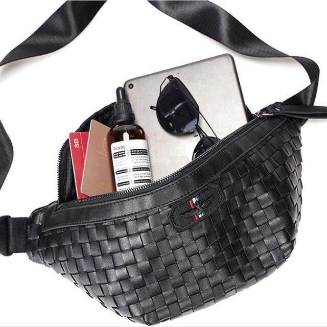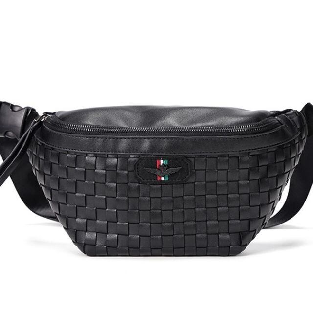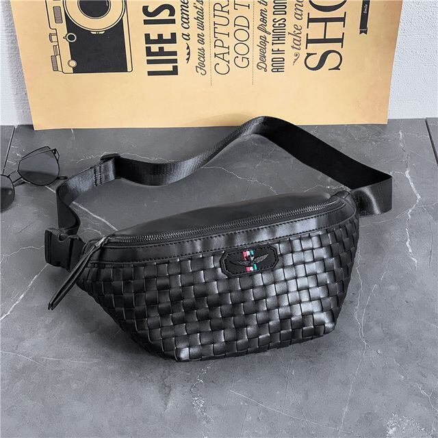 【予約販売】ボディバッグ ウエストバッグ メンズ メッシュ ブラック 斜め掛け メッセンジャー チェーン ブラック こなれ感 お洒落 韓国 トレンド
