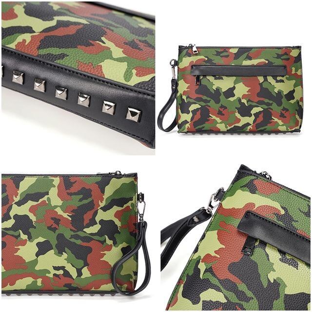 【予約販売】クラッチバッグ ハンドバッグ メンズ ポップ 迷彩柄 カモフラージュ スクエア カラー ブラック こなれ感 お洒落 韓国 トレンド