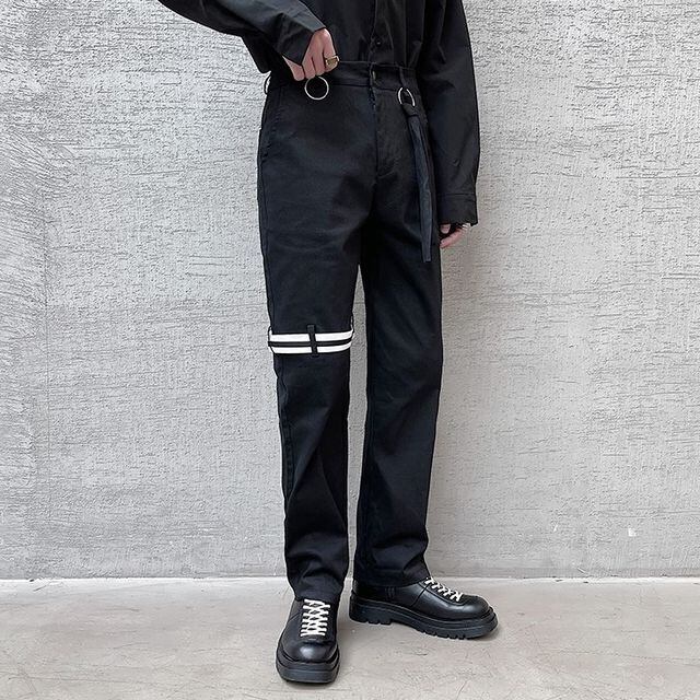 【予約販売】スリムパンツ メンズ シンプル ブラック ホワイト カジュアル きれいめ スタイリッシュ こなれ感 お洒落 韓国 トレンド 春 秋 M/L/XL