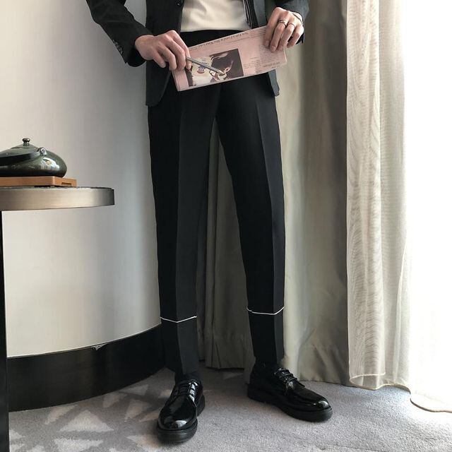 【予約販売】スリムパンツ メンズ シンプル ブラック スラックス きれいめ スタイリッシュ こなれ感 お洒落 結婚式 二次会 韓国 トレンド 春 秋 S/M/L/XL/2XL/3XL/4XL