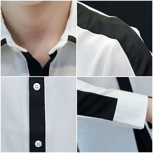 【予約販売】シャツ 長袖 メンズ バイカラー ホワイト ブラック モノトーン シック 結婚式 二次会 お呼ばれ こなれ感 お洒落 エレガント 韓国 トレンド 春 M/L/XL/2XL/3XL
