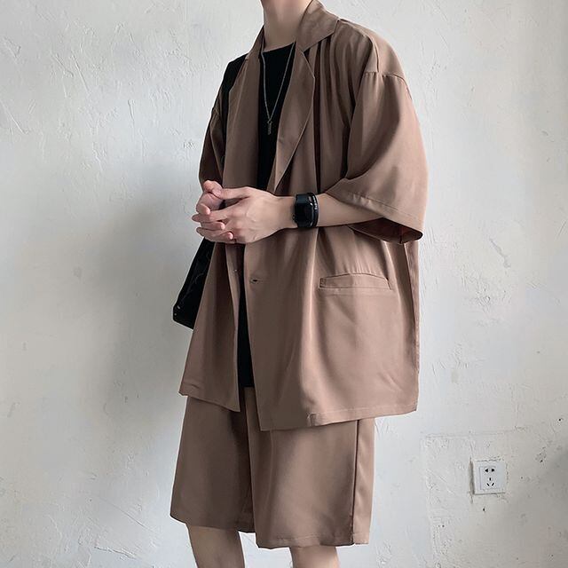【予約販売】メンズ セットアップ 上下 ハーフパンツ 半袖シャツ ブラック ブルー ベージュ カジュアル 春夏 M/L/XL/2XL