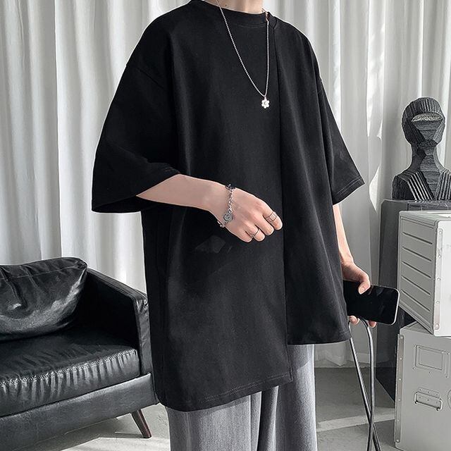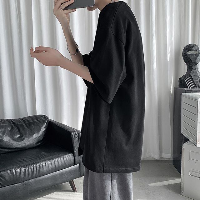 【予約販売】Tシャツ メンズ 半袖 トップス アシンメトリー ホワイト グレー ブラック ゆったり カジュアル こなれ感 お洒落 韓国 トレンド 春 M/L/XL/2XL/3XL