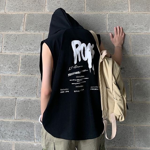 【予約販売】 トップス タンクトップ パーカー メンズ スエット生地 オーバーサイズ バックロゴ ブラック グレー ブルー ブラック ゆったり カジュアル こなれ感 お洒落 韓国 トレンド 春 夏 M/L/XL/2XL