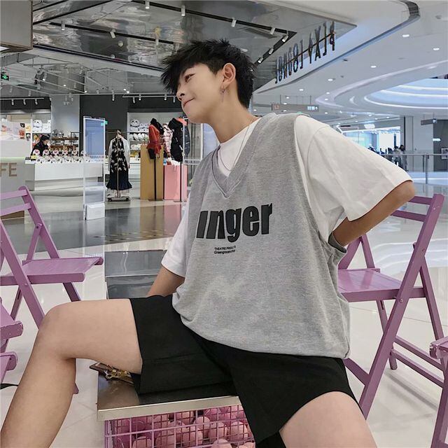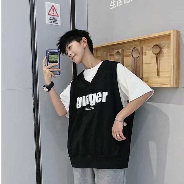 【予約販売】 トップス 半袖 メンズ Tシャツ レイヤード 重ね着風 ロゴ ブラック グレー ゆったり カジュアル こなれ感 お洒落 韓国 トレンド 春 夏 S/M/L/XL/2XL