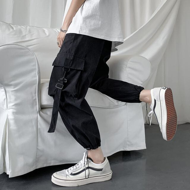 【予約販売】クロップドパンツ メンズ シンプル ブラック ブルー カジュアル ストレート スタイリッシュ こなれ感 お洒落 韓国 トレンド 春 秋 夏 S/M/L/XL/2XL/3XL