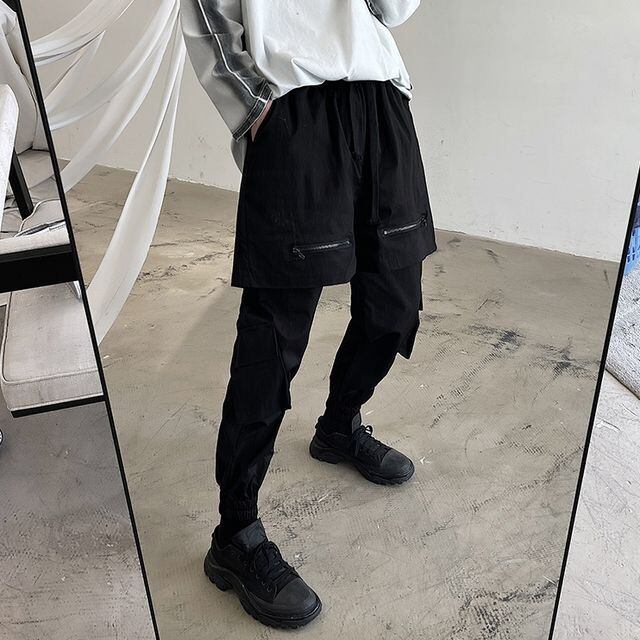 【予約販売】ジョガーパンツ メンズ 重ね着 レイヤード ブラック カジュアル スポーティー スタイリッシュ こなれ感 お洒落 韓国 トレンド 春 夏 秋 M/L/XL/2XL