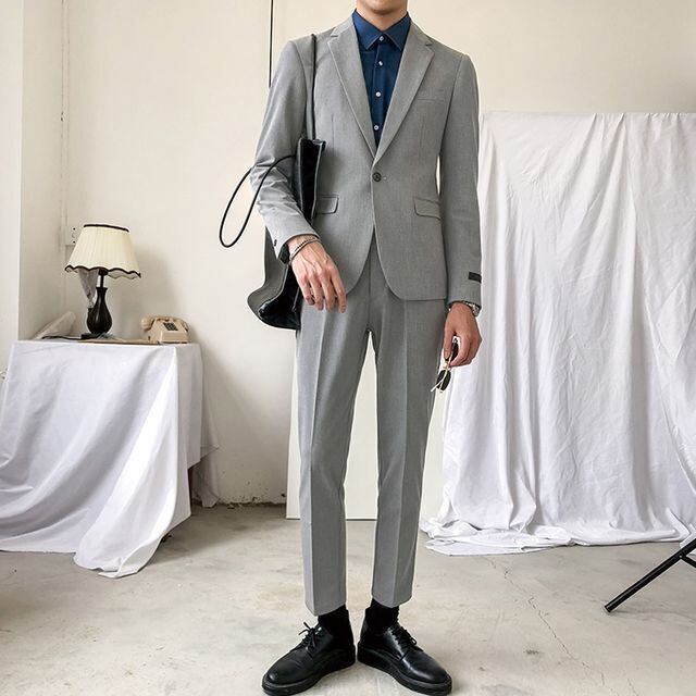 【予約販売】メンズ スーツ 無地 ブラック グレー 通勤 シック 男前 ビジネス ジャケット パンツ セット セットアップ パーティ パーティー 二次会 同窓会 結婚式 韓国 トレンド S/M/L/XL/2XL/3XL