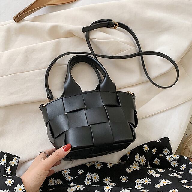全4色 ホワイト/グリーン/ブラック/ブラウン レディース 2way バッグ 四角編み ミニトート クロスバッグ ショルダーバッグ