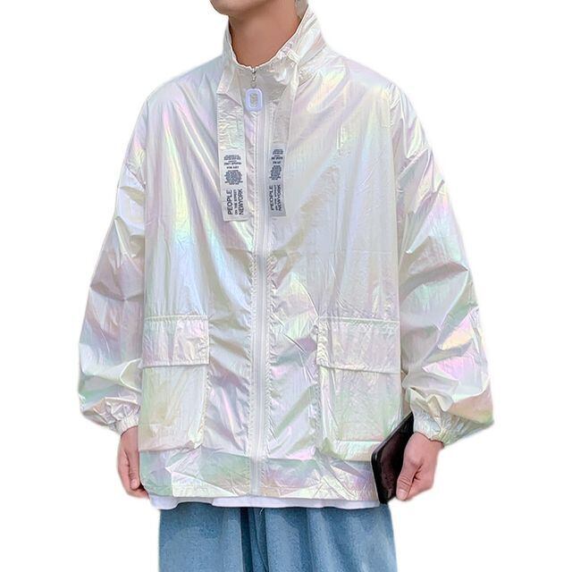 【予約販売】ナイロンジャケット ブルゾン 薄手 アウター ショート丈 メンズ ホワイト お洒落 こなれ感 ベーシック 秋 春 大きいサイズ S/M/L/XL/2XL/3XL