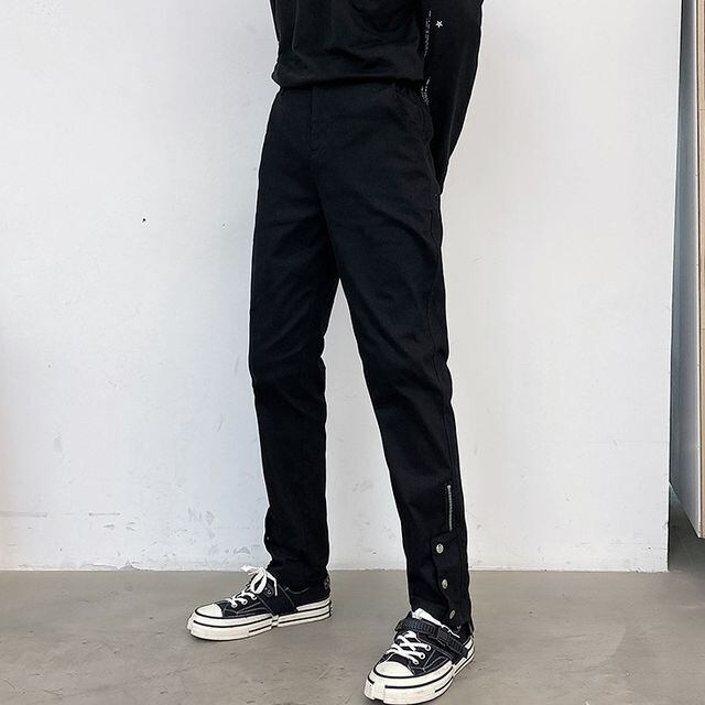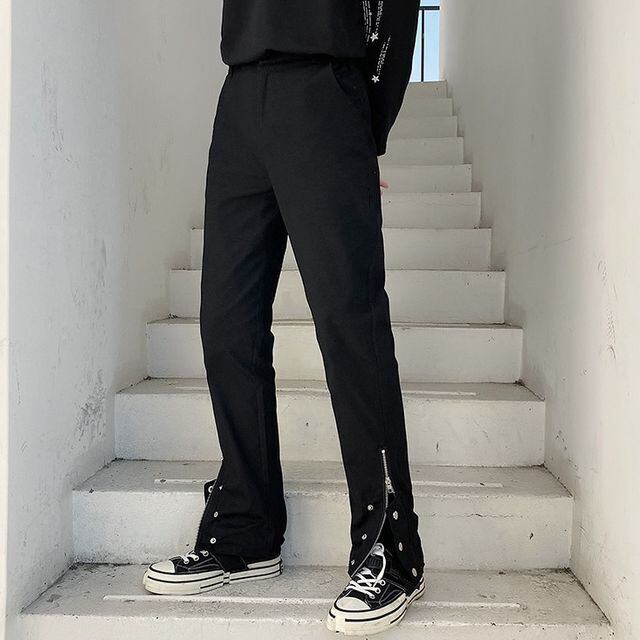 【予約販売】ストレートパンツ メンズ シンプル ブラック スリット ボトムス きれいめ スタイリッシュ こなれ感 お洒落 結婚式 二次会 韓国 トレンド 春 夏 秋 M/L/XL/2XL
