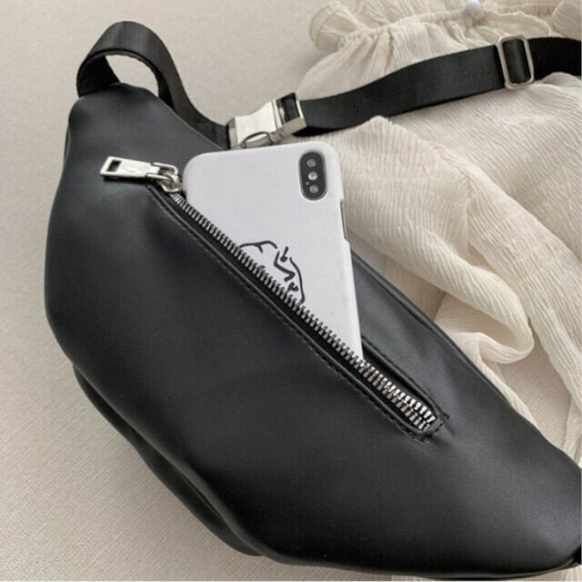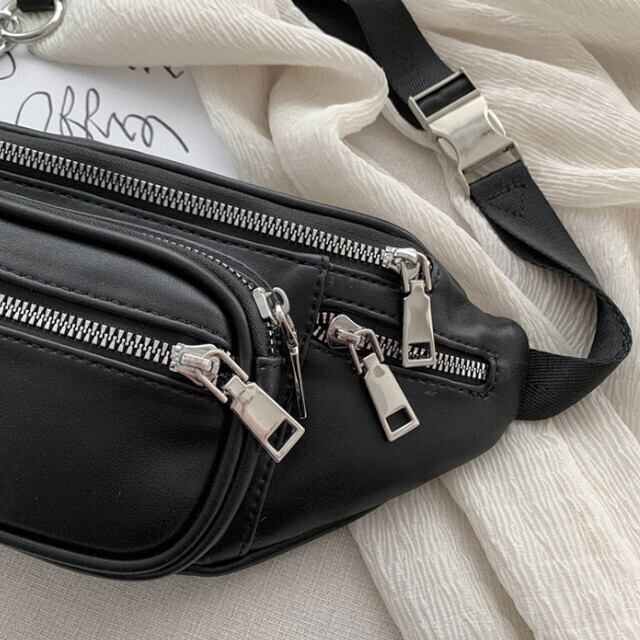全2色 ブラック/ホワイト レディース ヒップサック ユニークチェーン スポーティ アウトドア フェイクレザー ウエストバッグ