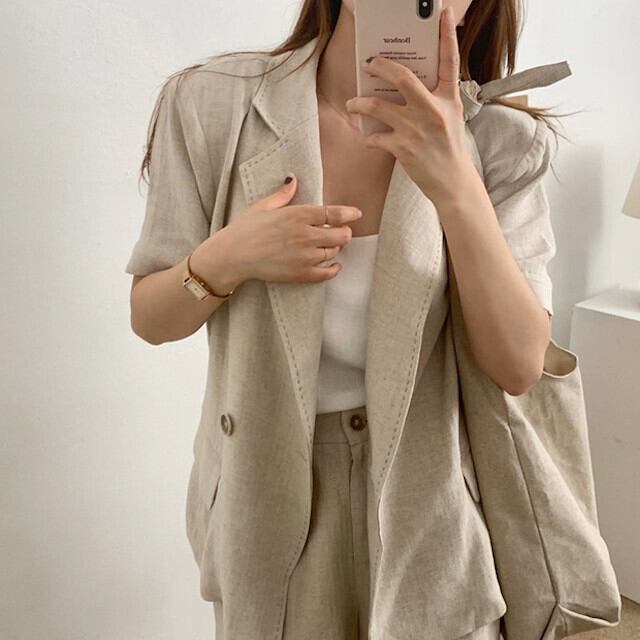 全2色 ベージュ/ブラック セットアップ レディース スーツジャケット ショートパンツ 半袖 春夏 S/M