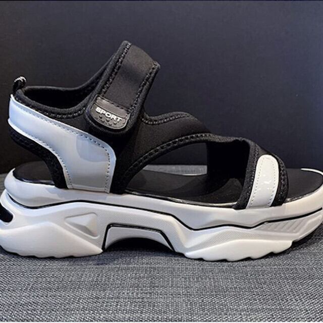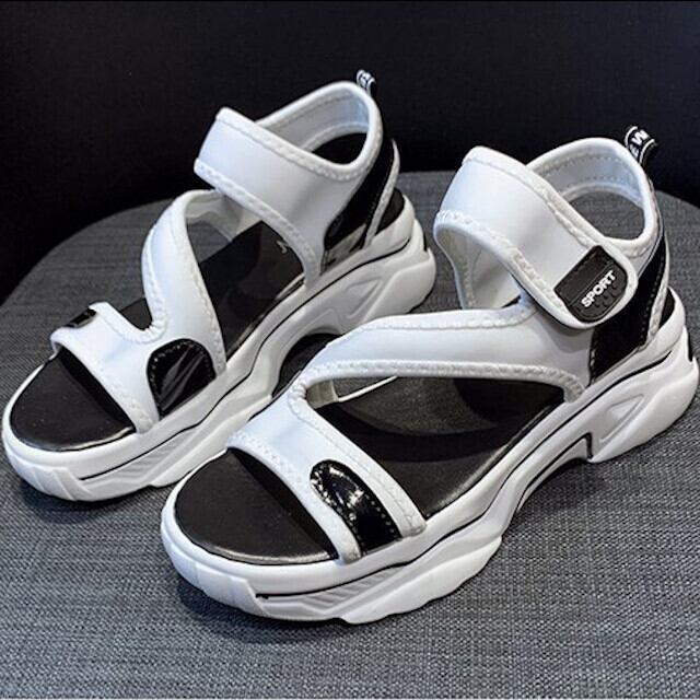全2色 ホワイト/ブラック レディース スポーツサンダル プラットフォーム 厚底サンダル サイドローカット スポーティ