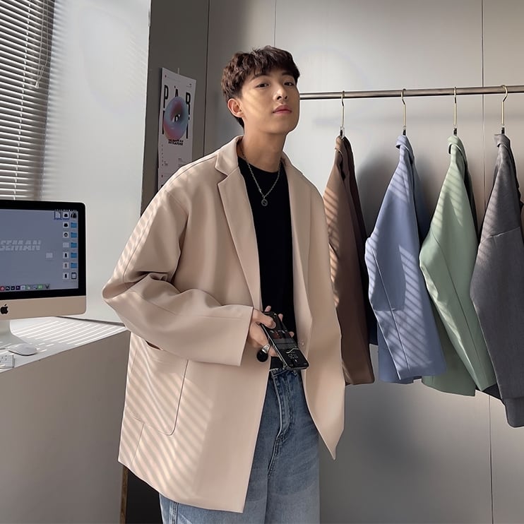 【予約販売】テーラードジャケット 無地 アウター メンズ オーバーサイズ ブラック ブルー ホワイト カジュアル こなれ感 お洒落 韓国トレンド 春 秋 大きいサイズ M/L/XL/2XL/3XL/4XL/5XL