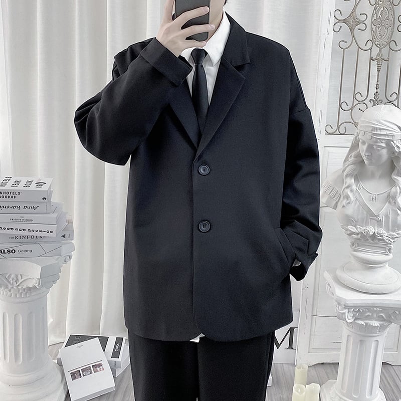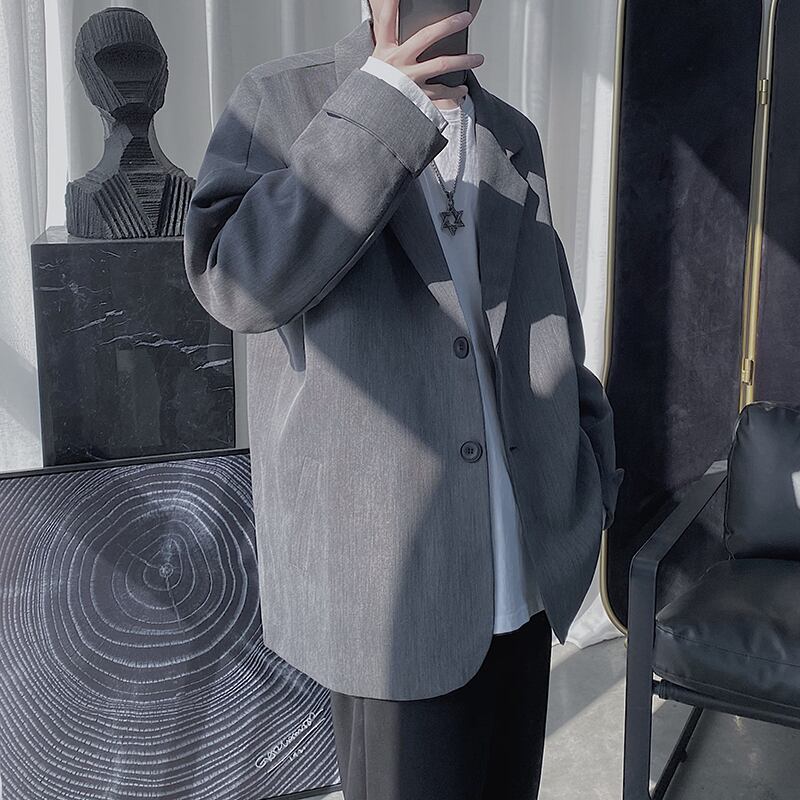 【予約販売】テーラードジャケット 無地 アウター ジャケット メンズ シンプル ベーシック くすみカラー ブラック オフホワイト グレー カジュアル こなれ感 お洒落 韓国トレンド 春 秋 大きいサイズ M/L/XL/2XL