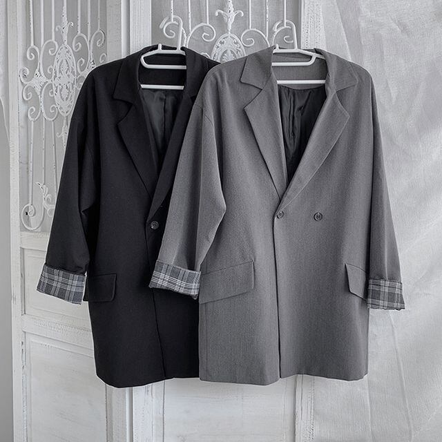 【予約販売】ジャケット メンズ 無地 チェック袖 グレー ブラック ドレスアップ シック こなれ感 お洒落 パーティー 結婚式 二次会 パーティー エレガント 韓国 トレンド 春 S/M/L/XL
