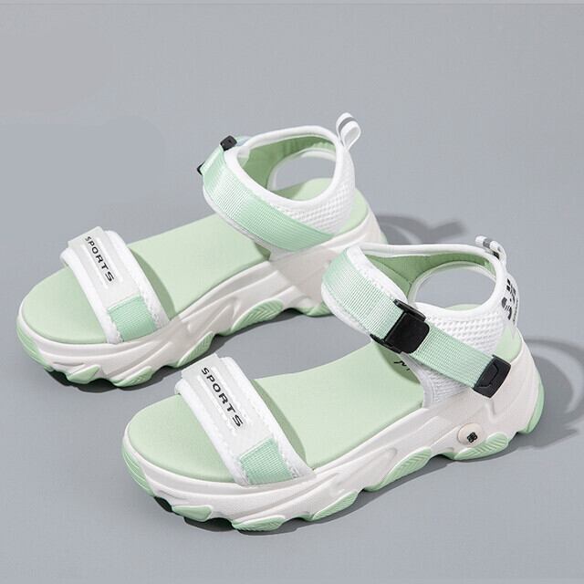 サンダル 靴 レディース スポーツサンダル 厚底サンダル サイドローカット スポーティ カジュアル 春夏 2色 グリーン/グレー 22cm/22.5cm/23cm/23.5cm/24cm/24.5cm