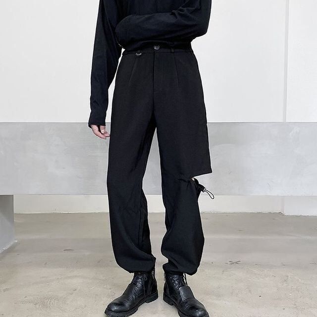 【予約販売】ワイドパンツ メンズ シンプル スリット ブラック モード ボトムス きれいめ スタイリッシュ こなれ感 お洒落 結婚式 二次会 韓国 トレンド 春 夏 秋 M/L/XL
