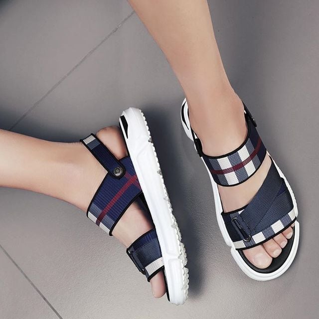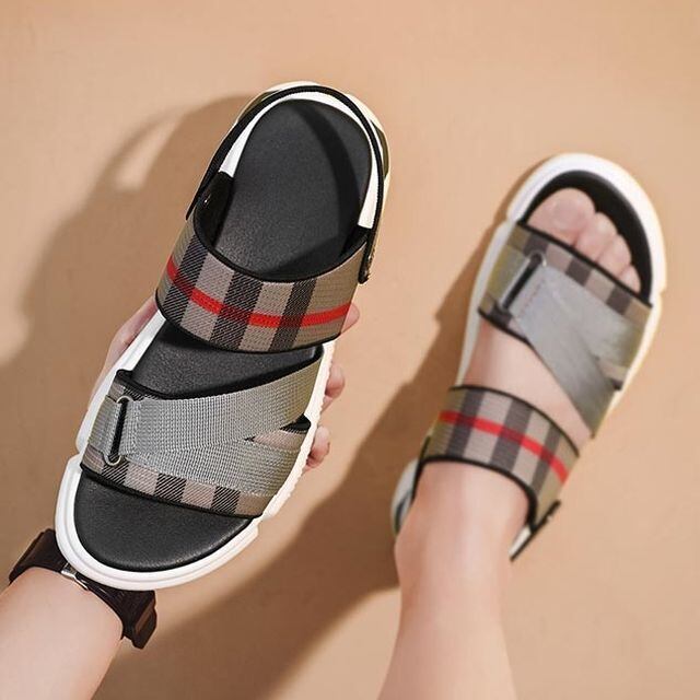 【予約販売】スポーツサンダル メンズ チェック柄 アウトドア 靴 スポーティー ブラック ネイビー ベージュ お洒落 ビーチサンダル カジュアル 25cm/25.5cm/26cm/26.5cm/27cm